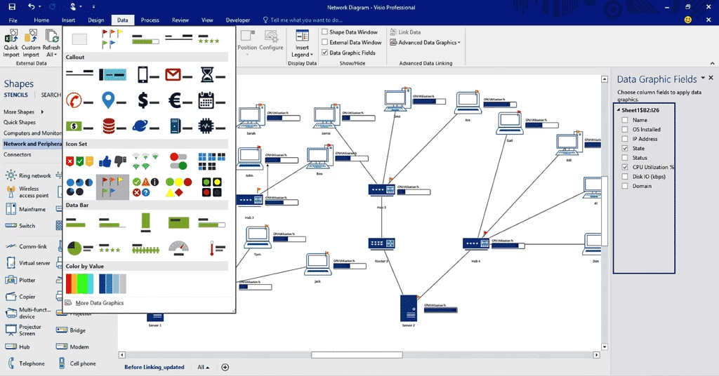 لديك أيضًا إمكانية مشاركة البيانات، حيث يمكنك ربط البيانات من مصادر مبتكرة متعددة، مثل Excel أو SQL Server أو SharePoint، بمخططك البياني فورًا. ما عليك سوى التأكد من تحديث المخططات باستمرار.